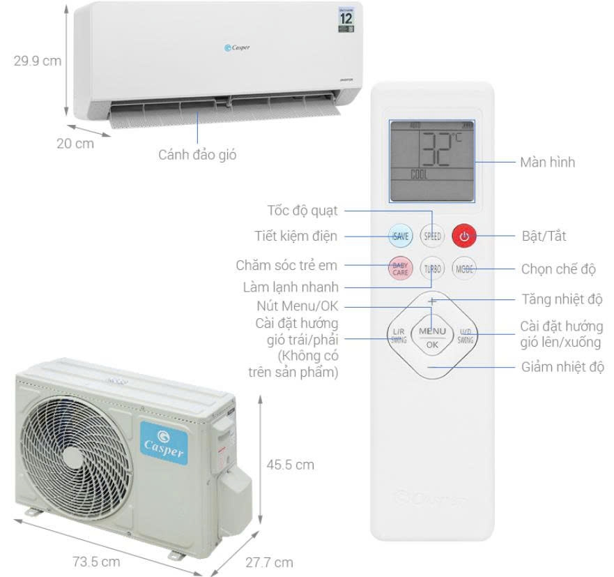Điều hòa Casper Inverter 24000 BTU 1 chiều GC-24IS35 gas R-32 Mới 100%