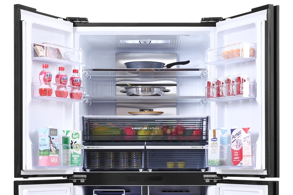 Sharp Inverter 525 lít SJ-FXP600VG-BK thuộc kiểu tủ lạnh Frenchdoor hiện đại với 4 cánh cửa đóng mở tiện lợi, kèm với mặt kính trên cửa tủ toát lên vẻ đẹp sang trọng, đây chắc chắn là nội thất khiến cho không gian bếp của bạn thêm phần tinh tế.