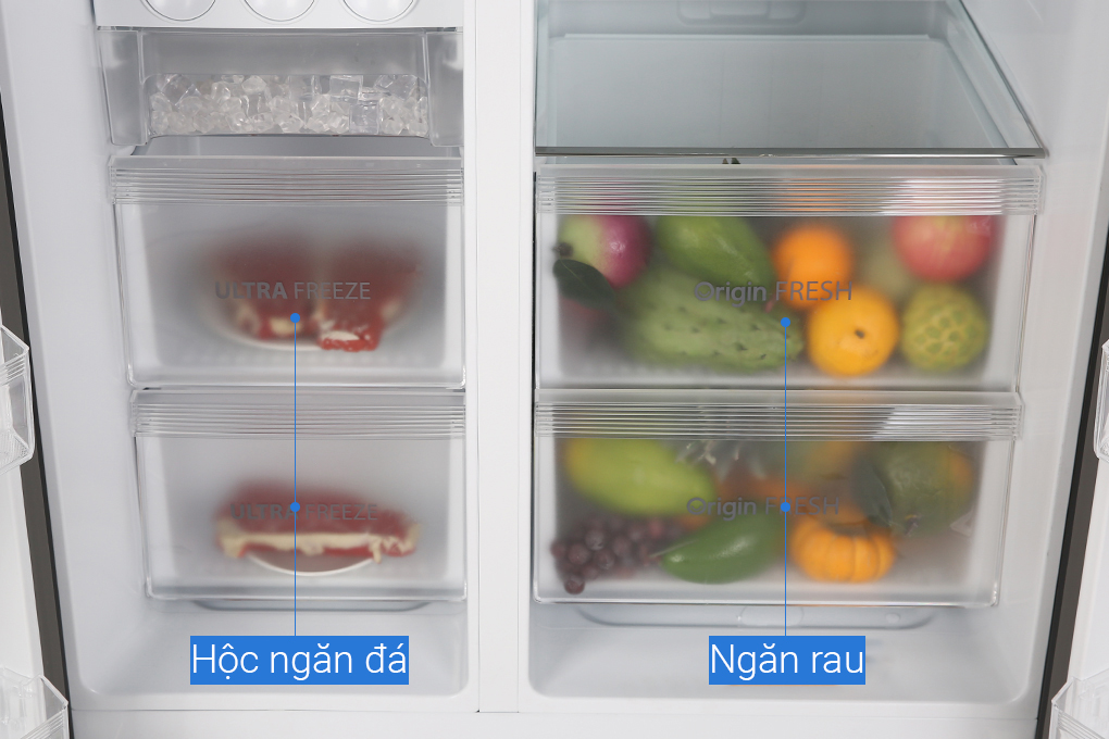 Làm đá và lấy nước ngoài tự động với 03 chế độ: nước lạnh, đá xay và đá viên.